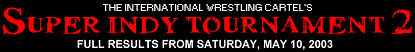 - Matt Stryker def. Christopher Daniels in the semi-finlals of the Super Indy tournament