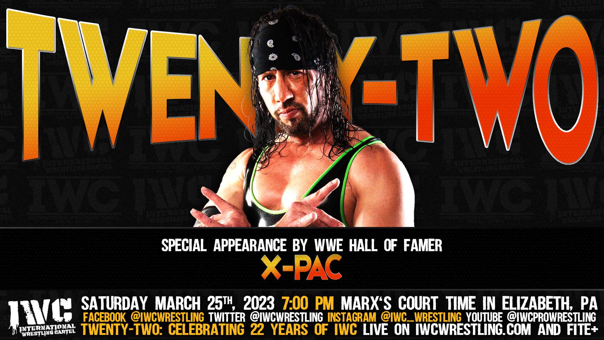 IWC Wrestling celebrates our TWENTY SECOND Anniversary on March 25th, and this year we have a new special guest! Two Time WWE Hall of Famer, DX and nWO member X-PAC will be making a very rare appearance! You saw him on WWE RAW’s 30th Anniversary, now meet him in-person! Meet and greet with X-Pac starts at 5:30 at Marx’s Court Time Sports Center in Elizabeth, PA, then the best wrestling on the independent scene begins at 7:00! More info and match announcements coming soon!