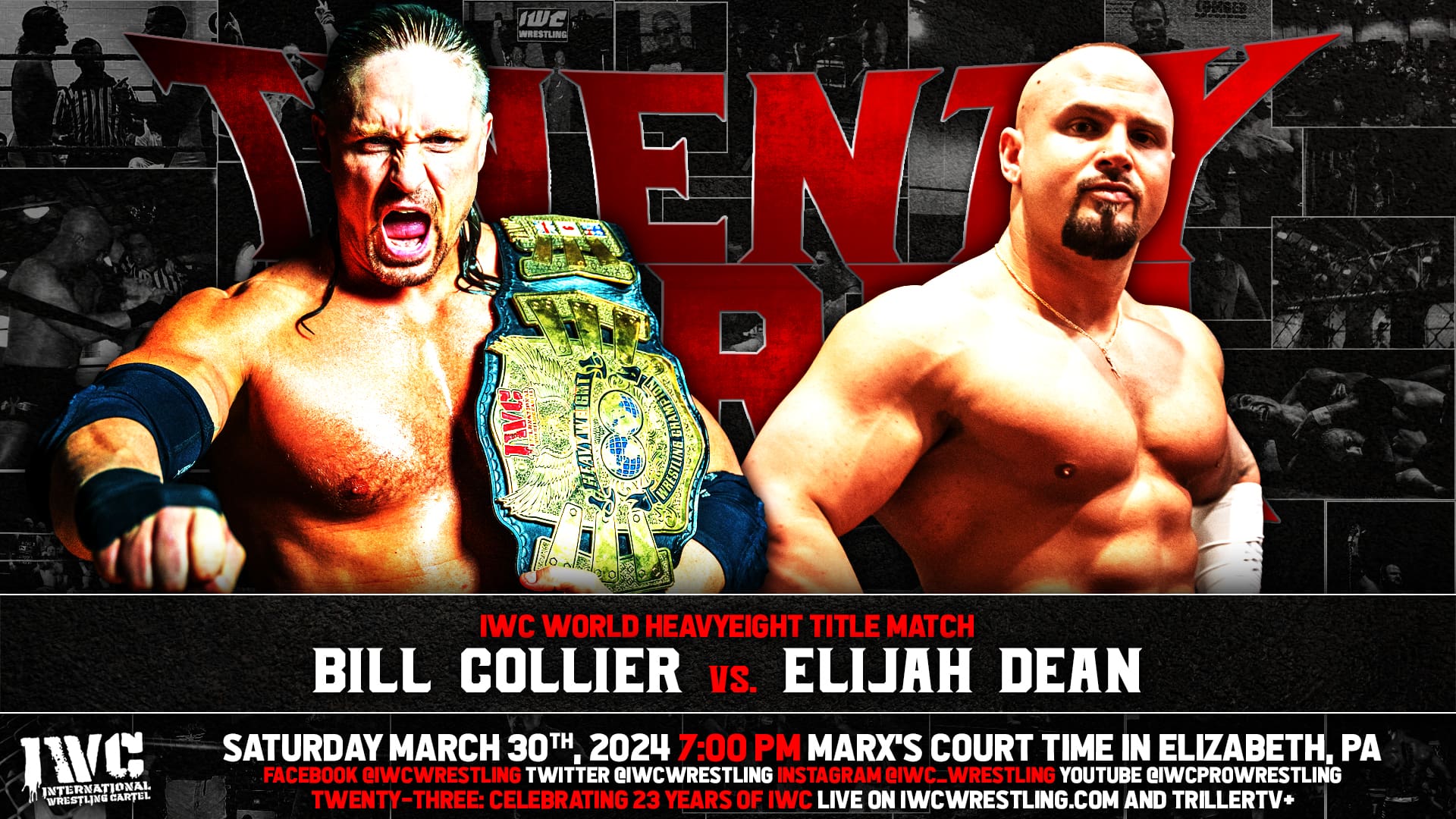 “Big Time” Bill Collier has been IWC Heavyweight Champion for well over a year. In December of 2022, he defeated Elijah Dean for the title. But at Reloaded 10.0, the Man Dime returned and made it known that he had his sights set on Collier and the top prize. What will we see when the last man to defeat “Big Time” challenges him to a rematch years in the making? History will be made, one way or another, at IWC’s anniversary show, Twenty-Three on March 30th!