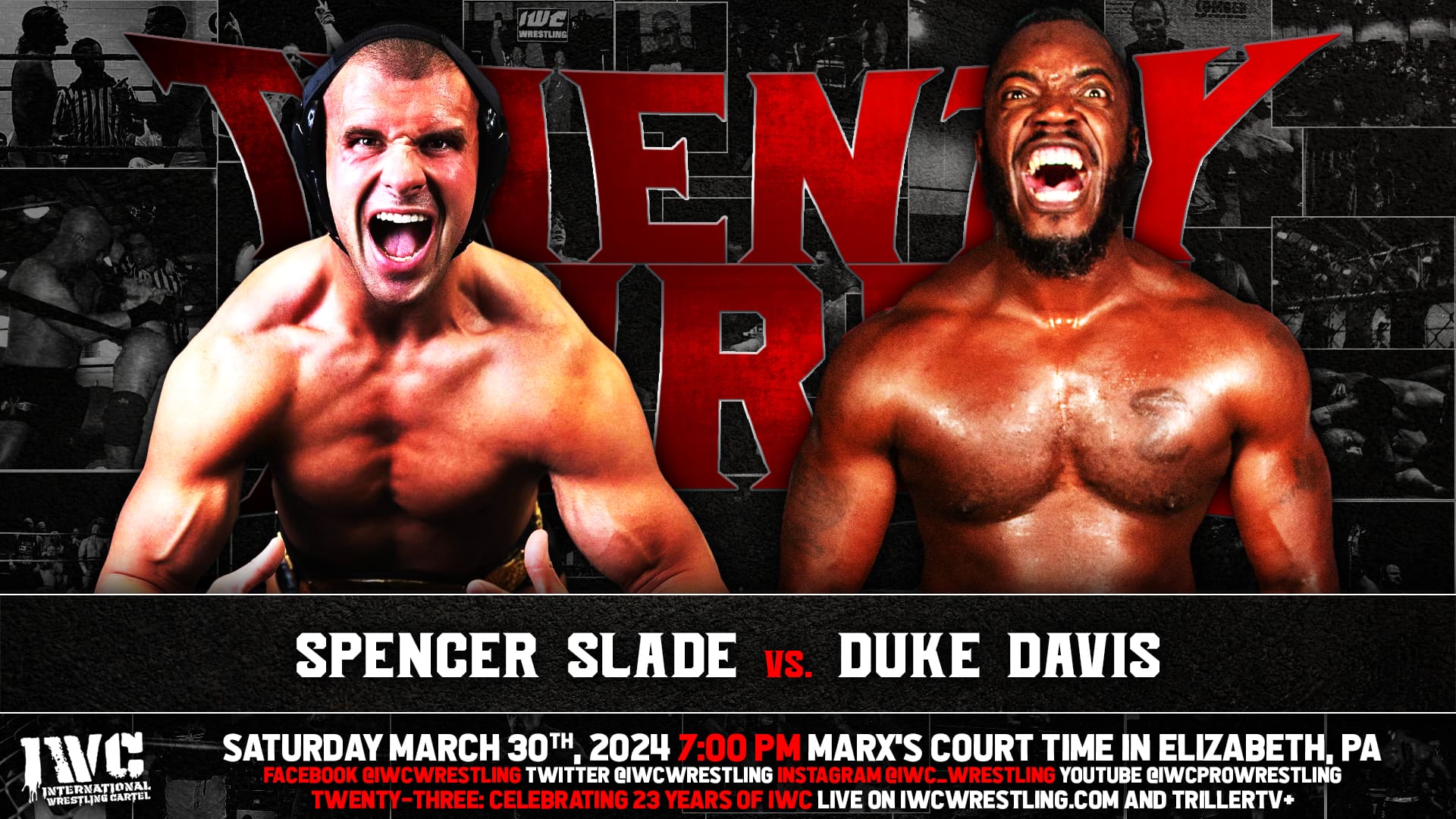 This has been a long time coming, and after the events at Reloaded 10.0, it’s time for these two to resolve their differences. At IWC Twenty Three on March 30th, it’ll be the “MetaHuman” Duke Davis against the “Submission Specialist” Spencer Slade!